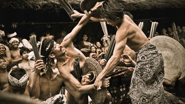 Tradisi ini merupakan tradisi yang dikenal dengan perang pandan, hanya dilakukan di salah satu desa di pulau Bali yaitu desa Tenganan, Karang Asem. Perang tersebut dilakukan satu lawan satu, dengan masing-masing orang memegang segepok pandan berduri sebagai senjata yang digunakan.